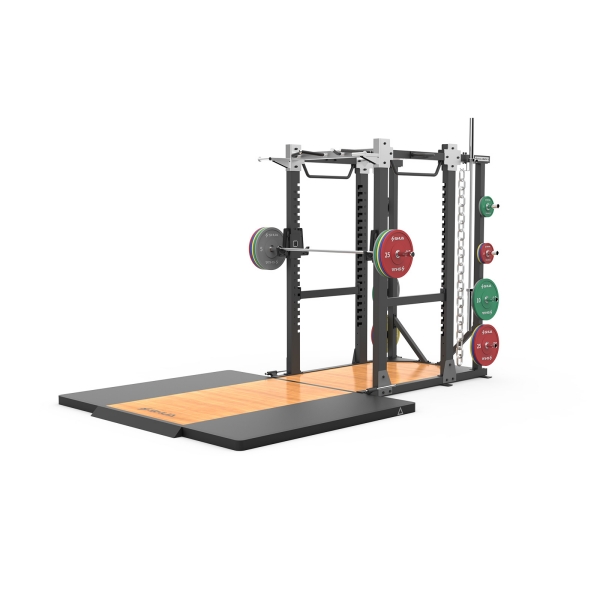 功能區(qū):杠鈴片整組掛架、舉重桿保護(hù)架、單杠架、可調(diào)引體向上架、粗繩訓(xùn)練器、彈力帶掛架