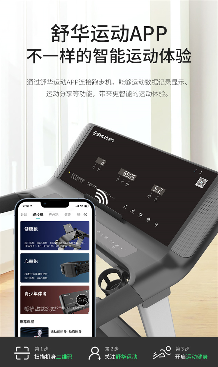 舒華I5智能家用跑步機是由舒華體育聯(lián)合中國體育科學學會、上海體育大學運動科學學院教授陸大江等權(quán)威機構(gòu)、專家共同研發(fā)設計。獨特之處在于它結(jié)合國際科學跑步研究理論,能夠針對不同用戶進行運動能力測試,并根據(jù)測試結(jié)果生成因人而異的有氧運動處方。這意味著每個用戶都能得到一個適合自己的運動方案,從而更好地達到運動效果。這一創(chuàng)新技術(shù)可以確保用戶在運動過程中能夠保持在最佳的區(qū)間狀態(tài),從而提高運動安全性和有效性。