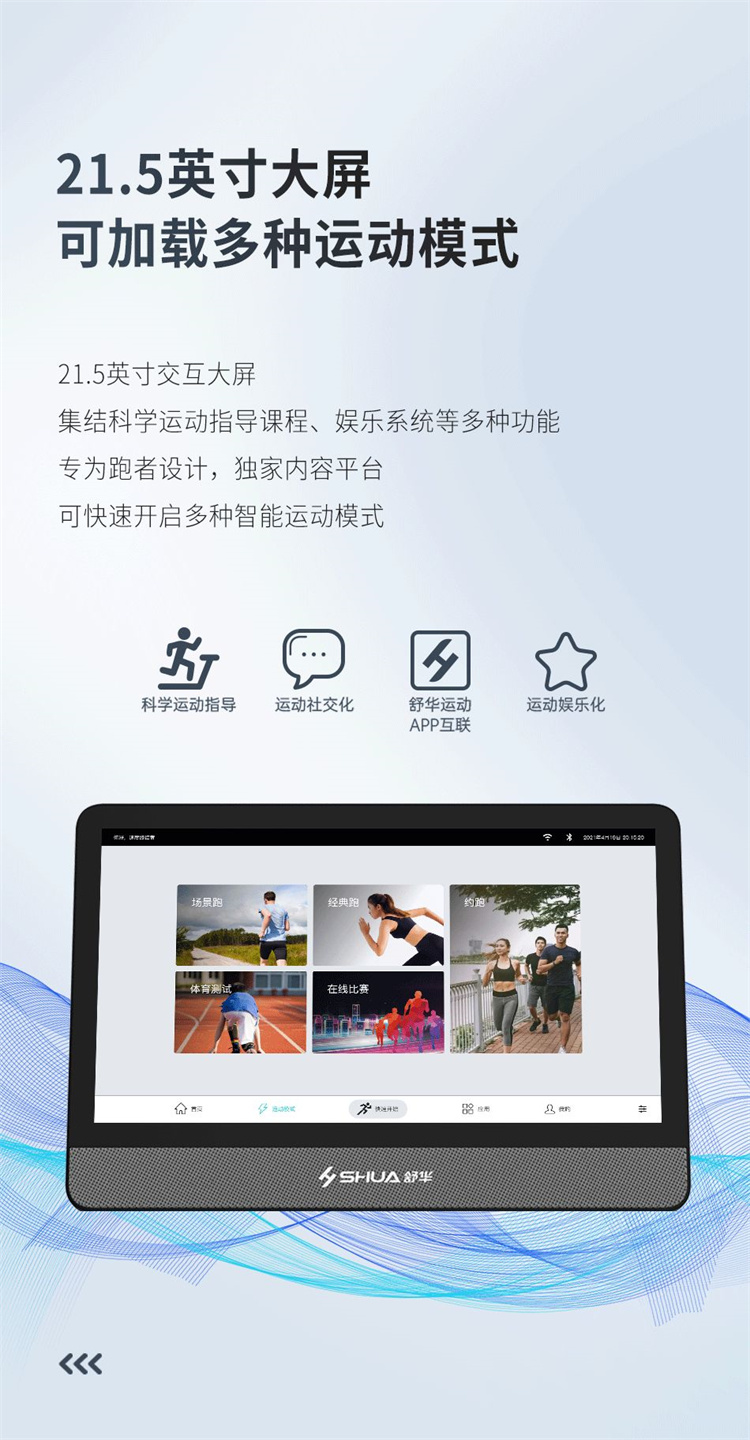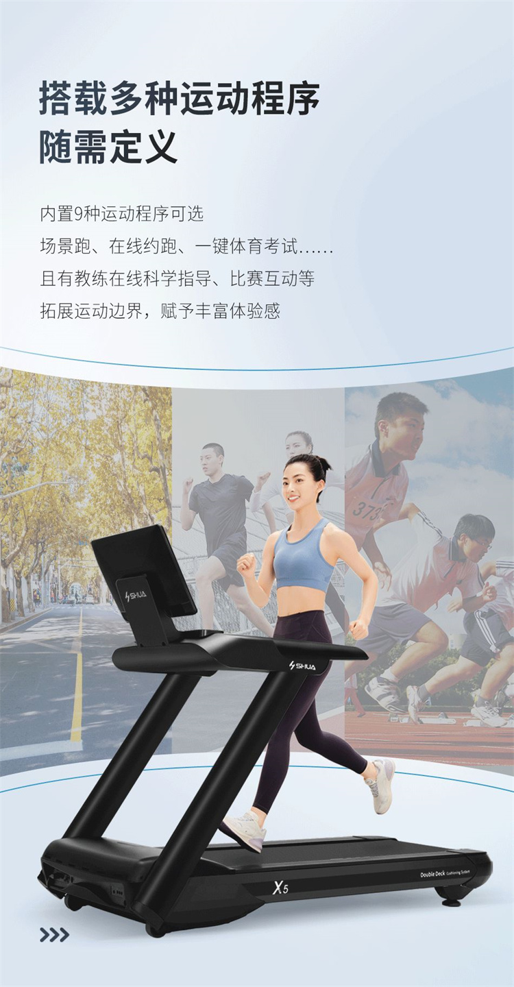 舒華X5 Pro豪華智能跑步機(jī)采用全新舒華跑步機(jī)系統(tǒng),搭載21.5寸大屏,內(nèi)置九種運(yùn)動(dòng)程序,包括場景跑、在線約跑和一鍵體育考試等內(nèi)容,亦有教練在線科學(xué)指導(dǎo)和比賽互動(dòng),可在線升級,歷經(jīng)耐久性測試,讓您使用更安全,雙跑臺(tái)設(shè)計(jì),全減震系統(tǒng),核心動(dòng)力采用F級耐高溫馬達(dá),5.0HP峰值馬力,提供源源動(dòng)力,讓您享受每一次暢跑體驗(yàn)。